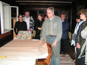 Das Team der Sternwarte empfängt uns freundlich. Den ersten "Programmpunkt" unserer Besichtigung macht eine Präsentation der Pläne des 50cm RC-Teleskops und seines Schutzbaus. Das Teleskop ist eines der legendären Preßberger-Teleskope. Sein Design besticht durch maximale Stabilität bei minimaler Masse. Ein Geniestreich des leider viel zu früh verstorbenen Ing. Rudolf Preßberger. Hier in Oberösterreich wurden seine Pläne gleich dreimal Wirklichkeit. |