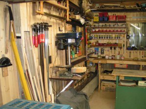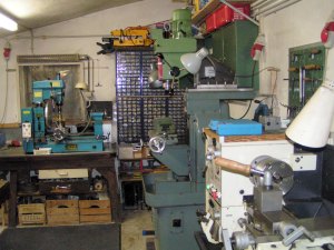 In Harpoint ist alles, mit Ausnahme der Optiken der Teleskope, selbst gebaut. Die Schutzbauten der Fernrohre, die Montierungen, und was sonst noch alles dazu gehört. Dazu bedarf es zweier Dinge: Einer gut eingerichteten Werkstätte und Leute, die damit auch umgehen können. Die Werkstätten nehmen einen erheblichen Teil des Haupthauses ein und sind getrennt nach Metall- und Holzbearbeitung sowie Schweißerei. Unzählige schwere Werkzeugmaschinen vermitteln den Eindruck eines mittleren Kleinunternehmens aus der metall- oder holzverarbeitenden Industrie. | |