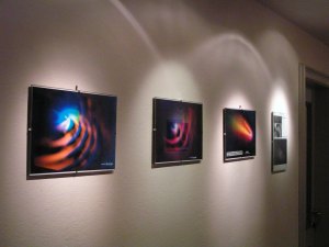 Im Wohngebäude befinden sich aber nicht nur Werkstätten, sondern auch Gästezimmer für Beobachter und in den Gängen des oberen Stockwerks eine modern und gefällig eingerichtete Bildergalerie, in der die schönsten und vor allem beeindruckendsten Bilder, die auf der Sternwarte gewonnen wurden, ausgestellt sind. | |