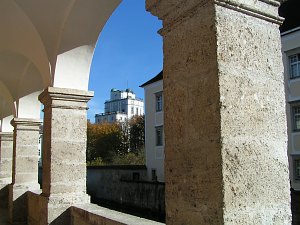 Die Kuppelbauten sind natürlich jüngeren Datums als das restliche Gebäude, denn im 18. Jahrhundert war die Sternwartekuppel noch nicht gebräuchlich. Man beobachtete damals aus hohen Fenstern oder im Freien. Erst Mitte des 19. Jahrhunderts kam die Drehkuppel auf, in Verbindung mit neueren Fernrohrtechniken, die auch kürzere Bauweisen der Instrumente erlaubten. Von der Dachterrasse des Mathematischen Turms bietet sich ein atemberaubender Panoramablick über das Kremstal bis zum Toten Gebirge. |