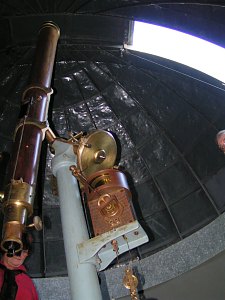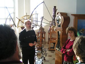 Mag. Dr. P. Amand Kraml, der Direktor der Sternwarte, führt uns höchstpersönlich durch die Sammlungen und vermittelt dabei ein Bild der seinerzeitigen Arbeit der Sternwarte. Auf unserem Foto sehen wir ihn vor einem Sextanten, mit dem niemand geringerer als Johannes Kepler in Prag beobachtet hat. Ob in ein paar Hundert Jahren die Besucher eines Museums ebenso ehrfürchtig vor Exponaten aus unserer heutigen Zeit stehen und etwa ein C8 bewundern werden? Foto mit freundlicher Genehmigung der Direktion der Sternwarte Kremsmünster. |