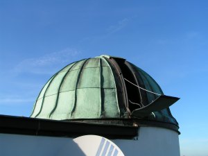 Im Dachgeschoß des Mathematischen Turms befindet sich die heutige Sternwarte (ursprünglich war aus den Fenstern jener Räume beobachtet worden, die heute die astronomische Sammlung beherbergen). Sie ist bei Führungen normalerweise nicht zu besichtigen und wird nur im Rahmen von Spezialführungen nach Vereinbarung gezeigt. In einer der drei kleinen Kuppeln, die im 19. Jahrhundert errichtet wurden, befindet sich ein Refraktor, der auch heute noch fallweise für Beobachtungen verwendet wird. |