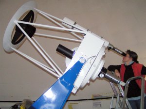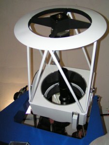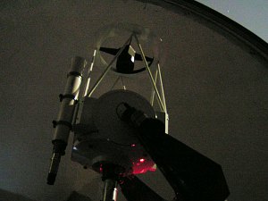 Wir erleben ein déjà vu: Seit einigen Jahren besitzt die LAG ein 50cm Cassegrain-Teleskop als Hauptinstrument, es ist baugleich mit jenem der Sternwarte in Harpoint. Lediglich der Anstrich ist etwas "bunter", doch das ist reine Geschmackssache. Hier in Linz zeigt sich, dass die Preßberger-Konstruktion durchaus auch für eine Volkssternwarte geeignet ist. Und vor allem auch: Daß ein (relativ) großes Teleskop in Stadtnähe durchaus nicht sinnlos ist. Gerade bei einer Volkssternwarte kommt es auf Licht an, und stellare Objekte leiden ohnedies nicht unter der Aufhellung des Himmelshintergrunds. Und für Nebel gibt es UHC-Filter. |