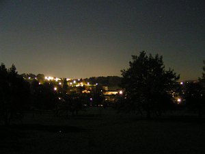 Nachdem wir unser Quartier im Stadtzentrum bezogen und in einer nahen Pizzeria ein Abendessen eingenommen hatten, machten wir uns zu Fuß zur Sternwarte auf - abgesehen von einem kleinen, nicht ganz so sportlichen Grüppchen, das mit dem Auto fuhr (und gerade ein paar Minuten schneller war).
