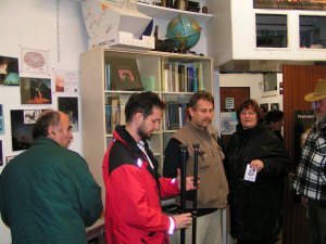 Günther Eder fotografiert die Supernova SN2004et, doch schließlich gehen uns dann doch die Beobachtungsobjekte aus und gegen Mitternacht beenden wir die Beobachtung. Wir sehen uns noch ein bißchen im Aufenthaltsraum der Sternwarte um und plaudern auch mit Erwin Obermair, der uns morgen seine Privatsternwarte zeigen wird. |