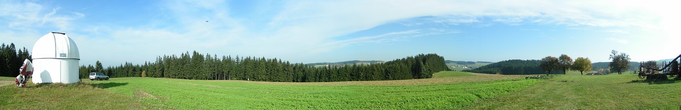 Wir besuchen die Sternwarte am frühen Nachmittag des 25. Oktober, und während es im restlichen Österreich immer nebeliger und kälter wird, können wir uns hier im Mühlviertel noch über wärmende Sonnenstrahlen freuen. In einer nahen Ortschaft treffen wir uns mit Erwin Obermair, er geleitet uns zur Sternwarte.