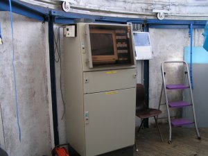 Auch dieses Teleskop wird im Prinzip mit der Steuerung von Manfred Stoll betrieben. Im Prinzip. Denn derzeit ist die Steuerung und damit die gesamte Sternwarte außer Betrieb. Die Ursache? Mäuse! Sie haben den Computer kurzerhand zu ihrem Hauptwohnsitz erklärt und dabei so ziemlich alles an Kabeln als Nahrung oder Nestbestandteil verwendet. Wir schlagen einhellig vor, in die Sternwarte eine Katzentür einzubauen und so das Einsatzgebiet der kleinen Raubtiere vom nahen Bauernhof um die Sternwarte zu erweitern. |