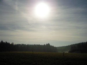 Einmal gesättigt, können wir es kaum mehr erwarten, zur Sternwarte aufzubrechen. Der schon recht volle Mond - wie wird wohl das Wetter zur nahen Mondfinsternis werden? - strahlt brutal durch eine leichte Cirrusbewölkung und erhellt, so gut das halt geht, die düstere Landschaft des Mühlviertels. Unheimlich ist die Stimmung hier: Leichter Bodennebel liegt über den schon herbstlich feuchten Wiesen, alles eingetaucht in das kalte, weiße Mondlicht; ideal, um Gruselgeschichten zu erzählen. Doch wir sind auf dem Weg zur Sternwarte. | |