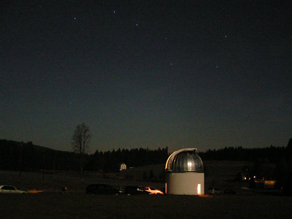 Die kleine 1500-Seelen Gemeinde Sandl im Mühlviertel genießt wohl den Ruhm, die höchste Anzahl von Sternwarten pro Einwohner aufzuweisen, nämlich zwei. Seit vielen Jahren betreibt einer der Pioniere der österreichischen Amateurastronomie, Prof. Wöss, hier eine Sternwarte, wir werden sie morgen besuchen. Seit kurzem steht hier auch die von Egon Döberl und Heribert Wagner errichtete Sternwarte Freiwald. Ihr gilt unser erster Besuch heute Abend.