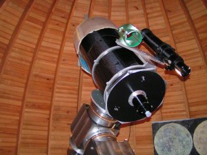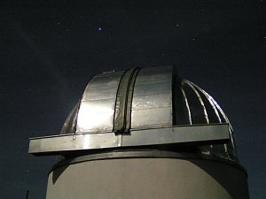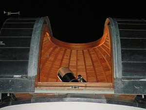 Die Kuppel ist eine echte Zeiss-Kuppel; per Zufall in Deutschland aufgetrieben, denn Zeiss baut schon längst keine Sternwartekuppeln mehr. Die Konstruktion ist ein echter Klassiker, wie aus einem alten Lehrbuch. Ich kann mich noch gut an die Zeiss-Kataloge aus den 70er-Jahren (uff, man muss schon sagen des vorigen Jahrhunderts) erinnern, da hat Zeiss diese Kuppeln noch angepriesen. Auf dem Wendelstein steht auch so eine Kuppel, im Sonnenobservatorium. Das war das ideale Werbefoto für Zeiss. |