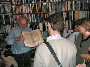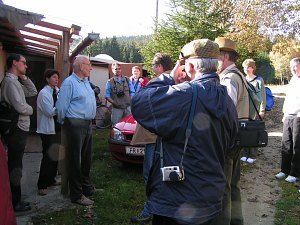Prof. Wöss empfängt die Gruppe vor seinem Haus. Bald akzeptieren wir, dass wir während der Führung quasi seine Schüler sind. Immer wieder wird unser Wissen durch spontane, in den Vortrag eingestreute Fragen auf die Probe gestellt. Doch wir wissen auf alles - was wir wissen können - eine Antwort. |