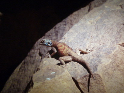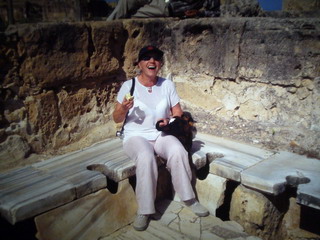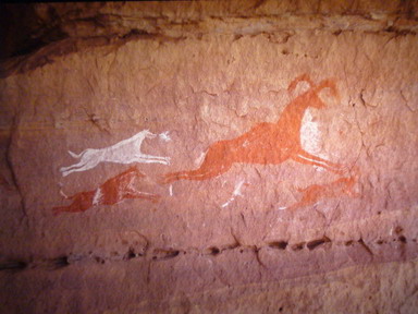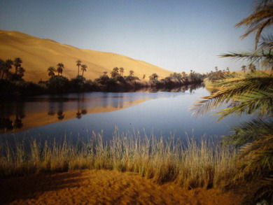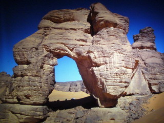 ...sowie Pannenreparaturen und Tankstops unterbrochen. Größere Zwangspausen gibt es durch einen glimpflich verlaufenen Unfall und durch das Verschwinden unseres dauernd stotternden Fahrzeugs, das nur auf 4 statt auf 6 Zylindern läuft und ergo mit den anderen nicht mithalten kann, aus dem Konvoi. Doris, Roland und ich irren mit unserem ortsunkundigen Fahrer mutterseelenallein kreuz und quer in der Wüste umher, auf der Suche nach den anderen. ... wozu die giftigen Wüstenkürbisse allerdings nicht zählen....iiihhh, extrem bitter - pelzige Zunge. Bei unserem ungewollten Versteckspiel und einem kleinen navigatorischen Treffpunktproblem (hier: Kursberechnung zu einem beweglichen Ziel) hat uns Christine, die uns in höchst unterschiedlichen Azimuten immer wieder am Horizont auftauchen sieht, nach einer wilden Verfolgungsjagd im chaotischen Zickzack-Kurs endlich wieder aufgegabelt. ...und später durch das bizarr zerklüftete, hyper-erodierte Akakus-Gebirge, das -geologisch gesehen- relativ rasch im Sand ertrinkt. Eine unpackbare Landschaft... Genau wie manche Leute heute noch, konnten auch schon die vor 10.000 Jahren hier lebenden Garamanthen der Versuchung nicht widerstehen, sich durch geschmackvolle Gravuren und Zeichnungen an diversen Wänden zu verewigen. Im Umm el Maa, dem größten der Mandara-Seen, treiben Hilmar und ich wie Korken auf dem extrem salzhaltigen, fäulenden,+schlatzigen+ Wasser mit eiskalten Oberflächen-Strömungen, während Doris, die sich jetzt auch rein getraut hat, uns entgegen schreit: "Wos isn dös für a See?", mit den Beinen hoch über der Wasseroberfläche hilflos Schwimmbewegungen vollführend. In einem kleineren, ebenso salzigen, jedoch in der "Schwimm-Sphäre" weniger heißen Nachbar-See kann man 1 cm kleine, knallrote Blattfußkrebschen (Branchiopoda) fangen, bei uns auch als Salinenkrebse bekannt. Eine Art Binnen-Zooplankton sozusagen. Mit ihren federähnlich aussehenden Beinen tummeln sie sich dort in Massen mit wellenartigem Beinschlag, beginnend mit dem hintersten hin zum vordersten Beinpaar, auf diese Weise Nahrungspartikel zu ihren Mandibeln spülend. Sie sollen aphrodisiakisch wirken, zumindest sind sie ein willkommener Snack für zwischendurch... Nach einer weiteren Zelt-Nacht mit Besuch von einem Schakal geht es zurück nach Sebha, zum Rückflug nach Tripolis. In der Römerstadt Leptis Magna sieht Roland erstmalig ein anderes als "Kaschperl"-Theater, und Doris amüsiert sich auf der antiken Latrine der Hadrians-Thermen. Die Medusenhäupter hier erinnern uns an die Mythologie, wie Perseus, Andromeda, Kepheus und Cassiopeia ans Himmelszelt gelangten. Nach einer Kurzbesichtigung von Tripolis, wo uns von jeder wichtigen Wand ein Porträt von Oberst Muammar al Qaddhafi, dem Führer der Großen libysch-arabischen sozialistischen Volks-Jamahiriya entgegen lacht, geht es wieder heim. Wir haben eine erlebnisreiche, rundum harmonische und hoch interessante Reise mit einer recht langen Sonnenfinsternis erleben dürfen, bei der wir auch viel gelacht haben. Sie wird uns immer in Erinnerung bleiben. Und vielleicht ergibt sich für die Sonnenfinsternis 2008 in Asien wieder eine Möglichkeit, gemeinsam ein derartiges Lebens-High Light genießen zu dürfen. Bernhard