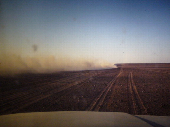 Fahren die da vorn durch einen See? Ach nein, nur eine Fata Morgana. Jetzt fehlt nur noch der Scheinriese Herr Tur Tur...