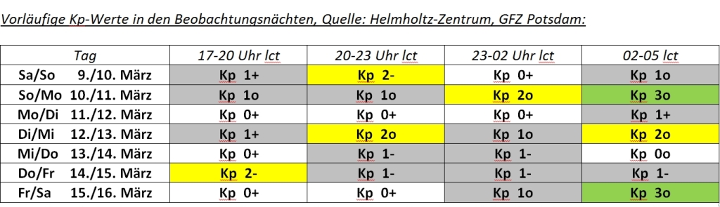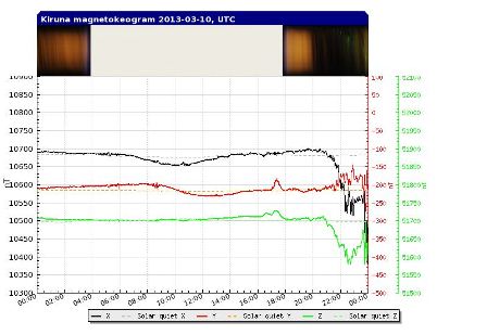 GEOMAGNETISCHE AKTIVITÄT: Viele klare Nächte, aber nur eine sehr schwache geomagnetische Aktivität bildeten die Rahmenbedingungen dieser Polarlichtreise. Der aussagekräftige Ap-Index, der im normalerweise recht aktiven Monat März durchschnittlich einen Wert von 17,3 (Bandbreite 4,6 bis 41,4) einnimmt, lag in der Woche vom 9.-16. März 2013 nach vorläufiger Analyse nur bei mageren 5,2. Selbst für ein solares Aktivitätsminimum wäre das ein bescheidener Wert, im Lichte des vermeintlich nahen Aktivitätsmaximums ist diese geringe Aktivität aber noch ungewöhnlicher.