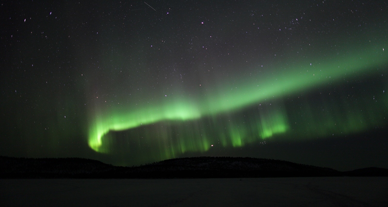 FAZIT: Die Verlagerung des geomagnetischen Pols von Nordamerika Richtung Europa zeigt bereits Wirkung. Im Vergleich zu meinem ersten Aufenthalt vor elf Jahren reicht mittlerweile auch schon bei sehr geringer geomagnetischer Aktivität das Polarlichtoval – von Ukonjärvi aus betrachtet - über den Horizont, zumindest in den Stunden um die magnetische Mitternacht. Damit sollten Polarlichter, klarer und dunkler Himmel vorausgesetzt, nicht nur in den dafür bekannten Regionen wie Tromsø oder Kilpisjärvi sondern auch in Ivalo-Inari theoretisch jede Nacht sichtbar sein. Als limitierender Faktor tritt allerdings die Helligkeit des Polarlichts zutage, denn bei geomagnetisch völlig ruhigen Verhältnissen (etwa Kp 0) konnten die Polarlichtstrukturen lediglich fotografisch nachgewiesen werden. |