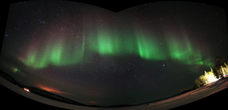 Die Größe der Erscheinung ist auch eine Herausforderung. Ein 10mm Weitwinkelobjektiv reicht bei einem APS-C Sensor nicht wirklich aus, um den Eindruck schön wiederzugeben, und ein Mosaik geht nicht angesichts der raschen Bewegung. So sind die Fotos hier -- erste Übungsfotos, muss ich sagen -- nicht der volle Eindruck, auch wenn die Farben deutlicher sind als mit freiem Auge.