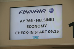 Bald nach 11 Uhr brechen wir zum Flughafen auf. Um 13:30 geht es dann zunächst wieder mit einem Airbus nach Helsinki. Beim Landeanflug berichtet der Captain vom "Frühlingsbeginn" in Helsinki bei Sonnenschein und einer Temperatur von minus 1 Grad. Im hohen Norden hat man halt etwas andere Vorstellungen vom Frühling als bei uns zu Hause.