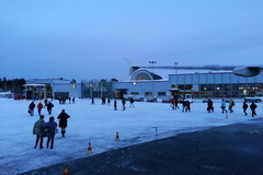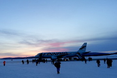 Nach einem rund 2-stündigen Zwischenaufenthalt in Helsinki geht es mit einem Airbus A320 der Finnair in etwas mehr als 1,5 Stunden weiter nach Ivalo, wo wir in der beginnenden Abenddämmerung kurz nach Sonnenuntergang landen. Der Schnee knirscht zwar unter den Füßen, doch trotzdem ist es recht erträglich, so um die -10 Grad und die Kälte fühlt sich recht trocken an. Andreas Pfoser empfängt uns am Flughafen, denn er ist bereits seit einer Woche hier. Nach einer kurzen Autobusfahrt kommen wir an unserem Ziel an, dem Feriendorf Ukonjärvi. Ukonjärvi ist ein Nebenarm des ca. 1000km2 großen Inarisees, ganz im Norden Lapplands nah an der russischen Grenze gelegen.