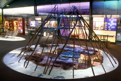 Das sehr interessant gestaltete Museum gibt einen guten Einblick in die Geschichte und Lebensweise der Samen, einem heute ca. 90-140.000 Personen umfassenden Volk, das seit der Jungsteinzeit vor ca. 10.000 Jahren den Norden Skandinaviens zwischen Norwegen und Rußland bewohnt. Mich persönlich beeindrucken am meisten die vielen Exponate und Fotografien, die Flora und Fauna dieses Gebietes zeigen. Während wir jetzt im langsam ausklingenden Winter Skandinaviens nur die Farben weiß = Schnee, Blau = Himmel und grün = Wald sehen, bieten Frühling, Sommer und Herbst eine unzählige Farbenvielfalt, vor allem an Pastelltönen im Frühjahr und allen Arten an Braun- und Rottönen im Herbst. Es ist sicherlich eine überlegung wert Lappland auch einmal zu dieser Zeit zu bereisen.