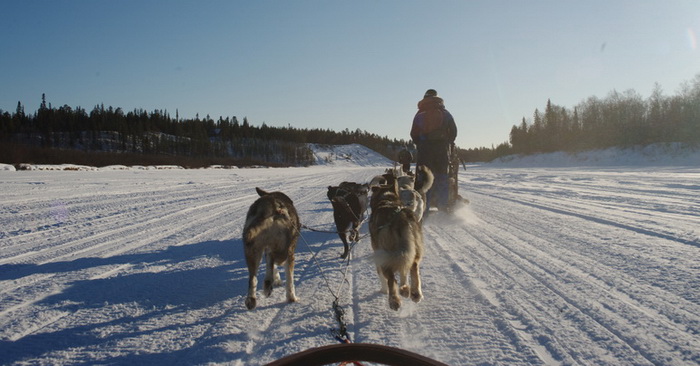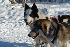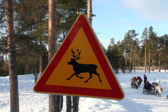 Am frühen Nachmittag geht dann meine Gruppe auf Tour. Zunächst geht es durch waldiges Gelände zu einem zugefrorenen Flußbett, in dem wir dann längere Zeit fahren, bis wir wieder in den Wald abbiegen, um dann bei einem Zelt bei offenem Feuer eine Tee- bzw. Kaffeepause mit einem kleinen Imbiß (von mir etwas hochtrabend als Rentiercarpaccio auf Lapplandmazzes bezeichnet) einzulegen. Es ist ein kaum beschreibbares Erlebnis einen Hundeschlitten durch die unberührte Natur Lapplands zu lenken. Nicht weniger schön ist es aber auch im Schlitten zu sitzen und sich fahren zu lassen. Selbst fahren heiß vor allem sich auf den Weg und die Hunde konzentrieren. Nur nebenbei hat man auch einen Blick frei für Landschaft. Fahren lassen heißt vor allem die Landschaft genießen zu können und da gibt es viel Schönes und Abwechslungsreiches zu sehen. Zurück von diesem kleinen Abenteuer bin ich mir sicher etwas erlebt zu haben, das mir lange in Erinnerung bleiben wird.