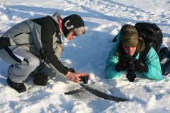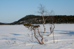 Am frühen Nachmittag bricht ein Teil von uns zu einer Seewanderung zu einer Insel auf. Währenddessen unternehme ich mit Franz einen Spaziergang in der näheren Umgebung mit dem Ziel zu einigen Detail- bzw. Makroaufnahmen in der Schneelandschaft zu kommen.