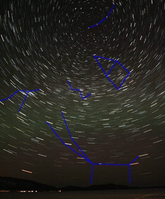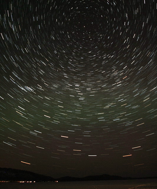 Im Süden sind die Tagesbahnen der Sterne so flach, dass sie fast parallel zum Horizont zu verlaufen scheinen.
