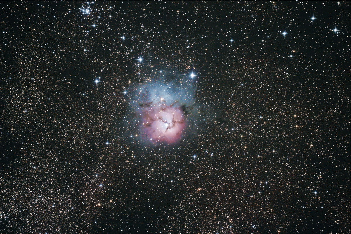 Weniger stark verkleinerter Ausschnitt des Trifidnebels.