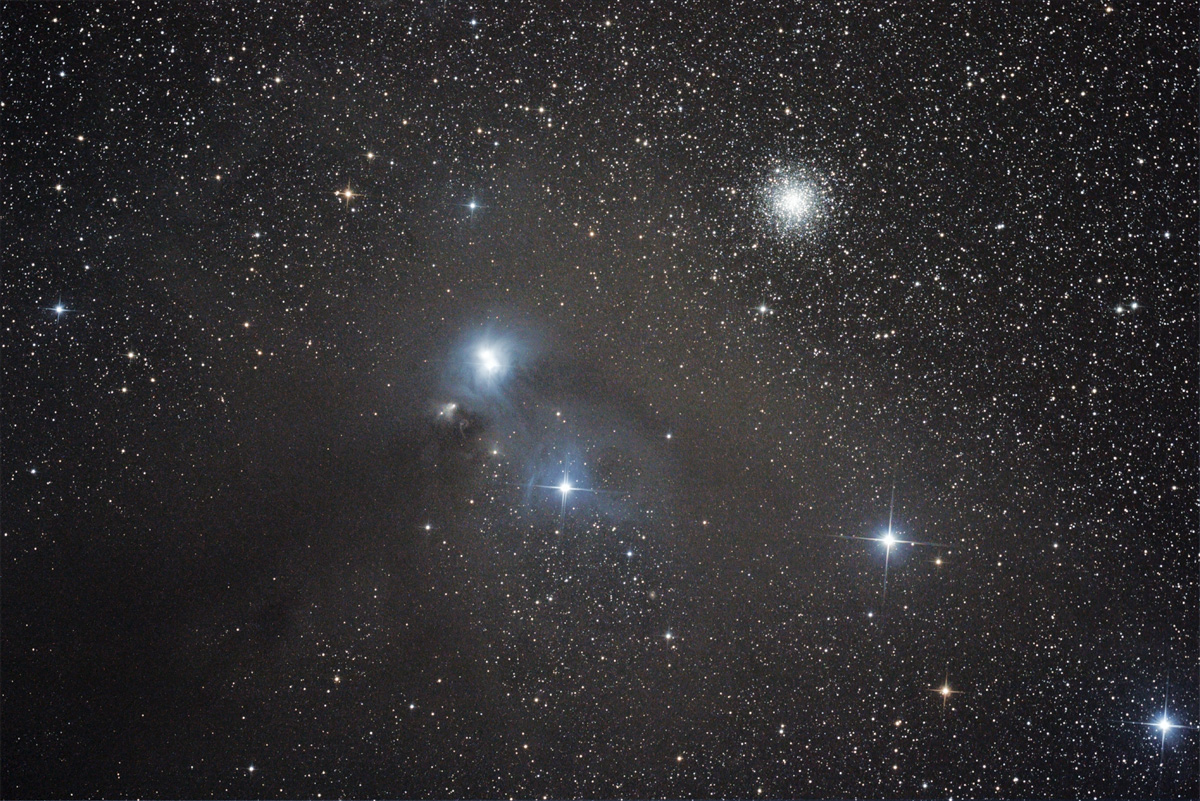 Noch schönere Reflexionsnebel liegen um Antares im Skorpion, aber die sind zu groß für meine Konfiguration.