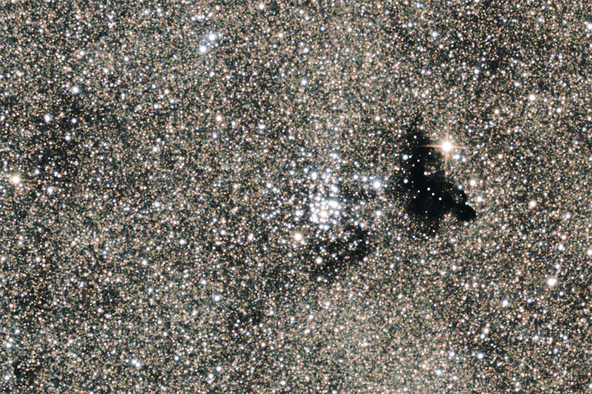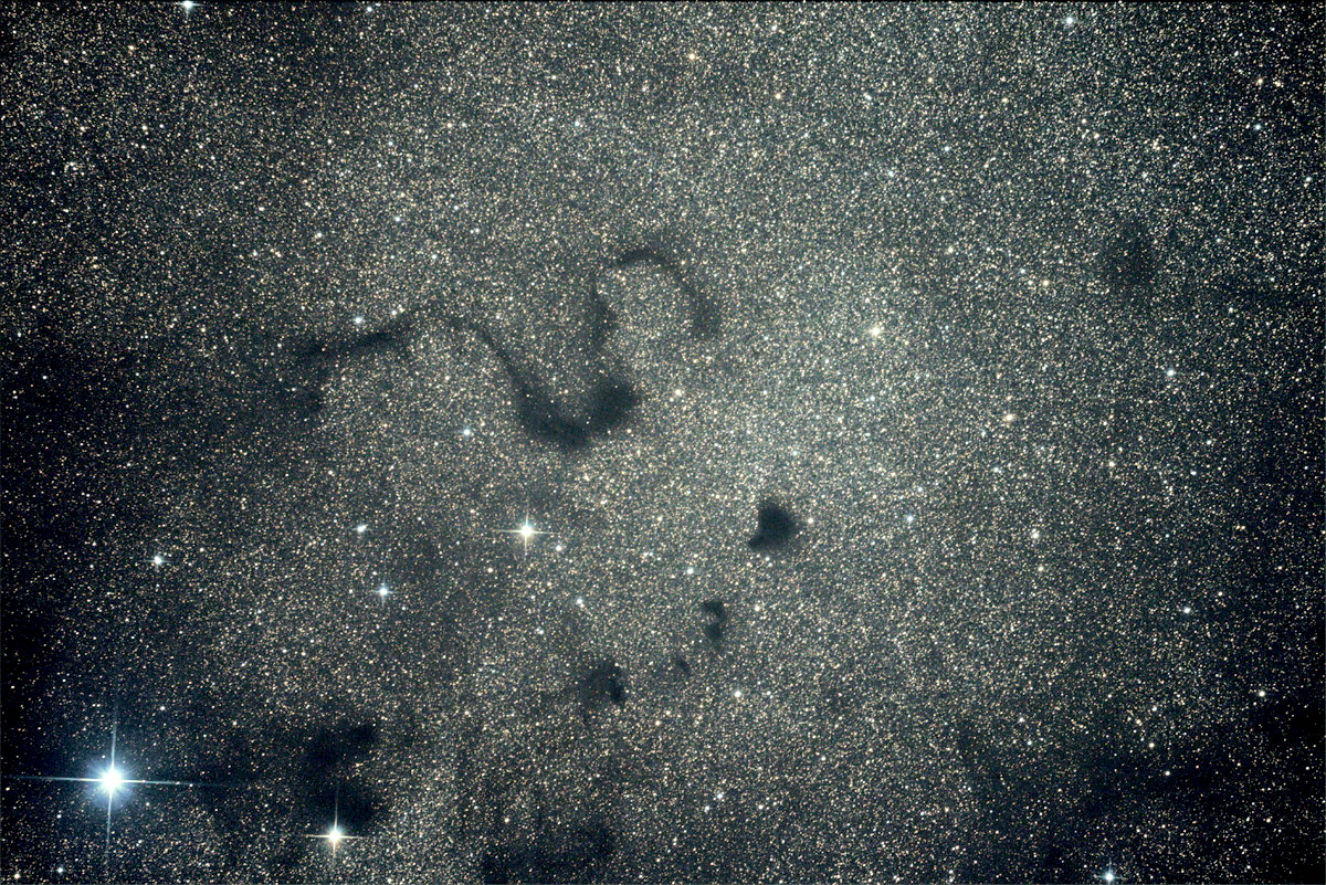 Unter den vielen kleinen und großen Dunkelnebeln einige in der Nähe bekannter Objekte.
