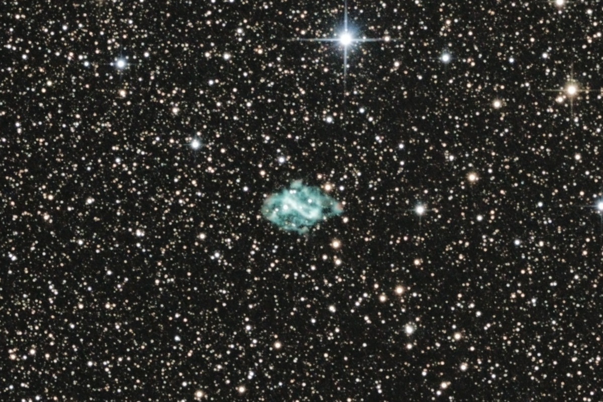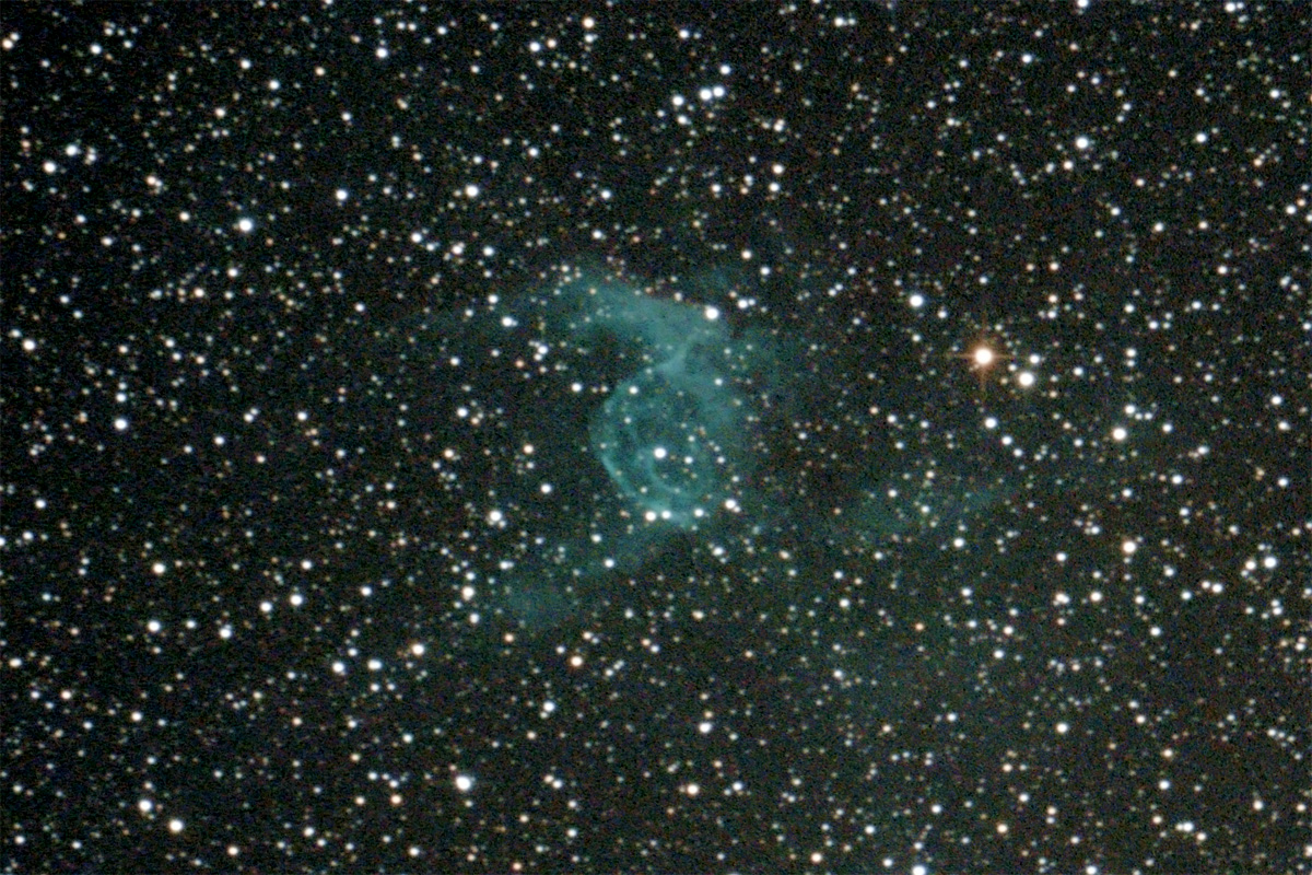 Planetarische Nebel sind für 750mm Brennweite und DSLR zu klein; eine Ausnahme bildet ein interessantes Objekt im Sternbild Fliege (Musca).