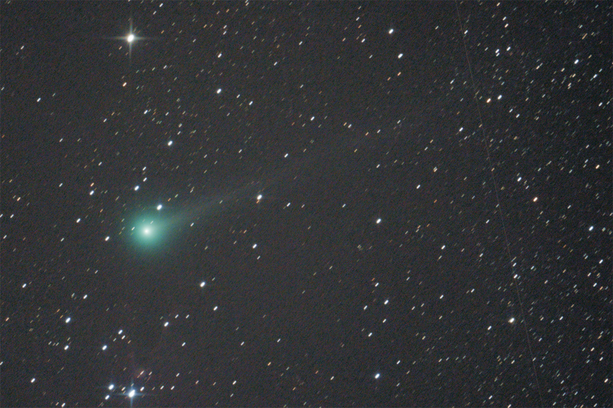 Der neue Komet ist C/2014 E2 (Jacques). Er wird erst im Sommer auf der Nordhalbkugel zu sehen sein. Sein Anblick überrascht. Er ist wesentlich heller, als die Ephemeriden vermuten lassen.