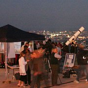 | Unsere "Sternwarte" hat keinen Turm und keine Kuppel, nur ein großes Fernrohr, dafür können wir sie einpacken und fast überall hinkommen und bei besonderen Anlässen die schönsten Himmelsobjekte vor Ort herzeigen! Anschauliche Erklärungen gibt's wie auf den großen Sternwarten! Besonderen Wert legen wir auf individuelle Betreuung; wir beantworten (fast) jede Frage und gehen auf Ihre persönlichen Wünsche ein. Je nach Wetterlage stehen auch immer genügend Fernrohre bereit, sodass es zu keinen langen Wartezeiten kommt. Wir veranstalten unsere Himmelsbeobachtungen an Plätzen, die auch mit öffentlichen Verkehrsmitteln gut erreichbar sind, die dennoch einen einigermassen guten Himmelsanblick ermöglichen und die sich in der Öffentlichkeit einer großen Bekanntheit und Beliebtheit erfreuen. Außer bei besonderen Anlässen (Sonnen- oder Mondfinsternisse oder ähnliche interessante Ereignisse) finden die Beobachtungen meist zu Zeiten statt, die auch Familien mit Kindern einen Besuch ermöglichen. Leistungsstarke, transportable Teleskope bilden das Herz unserer "mobilen Volkssternwarte". Bei Bedarf können diese Instrumente durch Schautafeln und ein modernes Computerplanetarium ergänzt werden; damit lassen sich nicht nur der aktuelle Anblick des Sternenhimmels, sondern auch Raumflüge zu anderen Planeten, Sternen oder sogar Galaxien simulieren und der Himmelsanblick in Vergangenheit und Zukunft darstellen. Wir können alle wichtigen Himmelsobjekte zeigen, und der Bordcomputer unseres modernen Fernrohrs findet sie auch in Sekundenschnelle. Natürlich müssen Wetter und Umgebung stimmen, denn viel Licht und Dunst stören erheblich. Aber der Mond und die hellen Planeten sind allemal auch in der Stadt lohnende Anblicke. Wenn wir mit unserer Sternwarte ein bißchen aus der Stadt hinaus fahren, dann können wir auch Sternhaufen, Nebelgebiete und ferne Milchstraßenobjekte sehen.