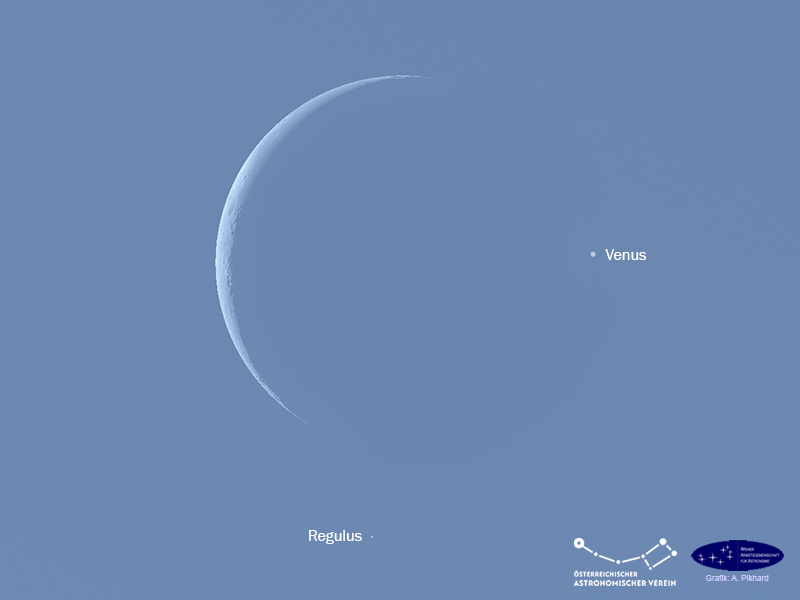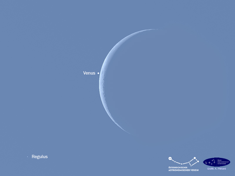 Mond, Venus und Regulus unmittelbar nach der Bedeckung (für Wien)