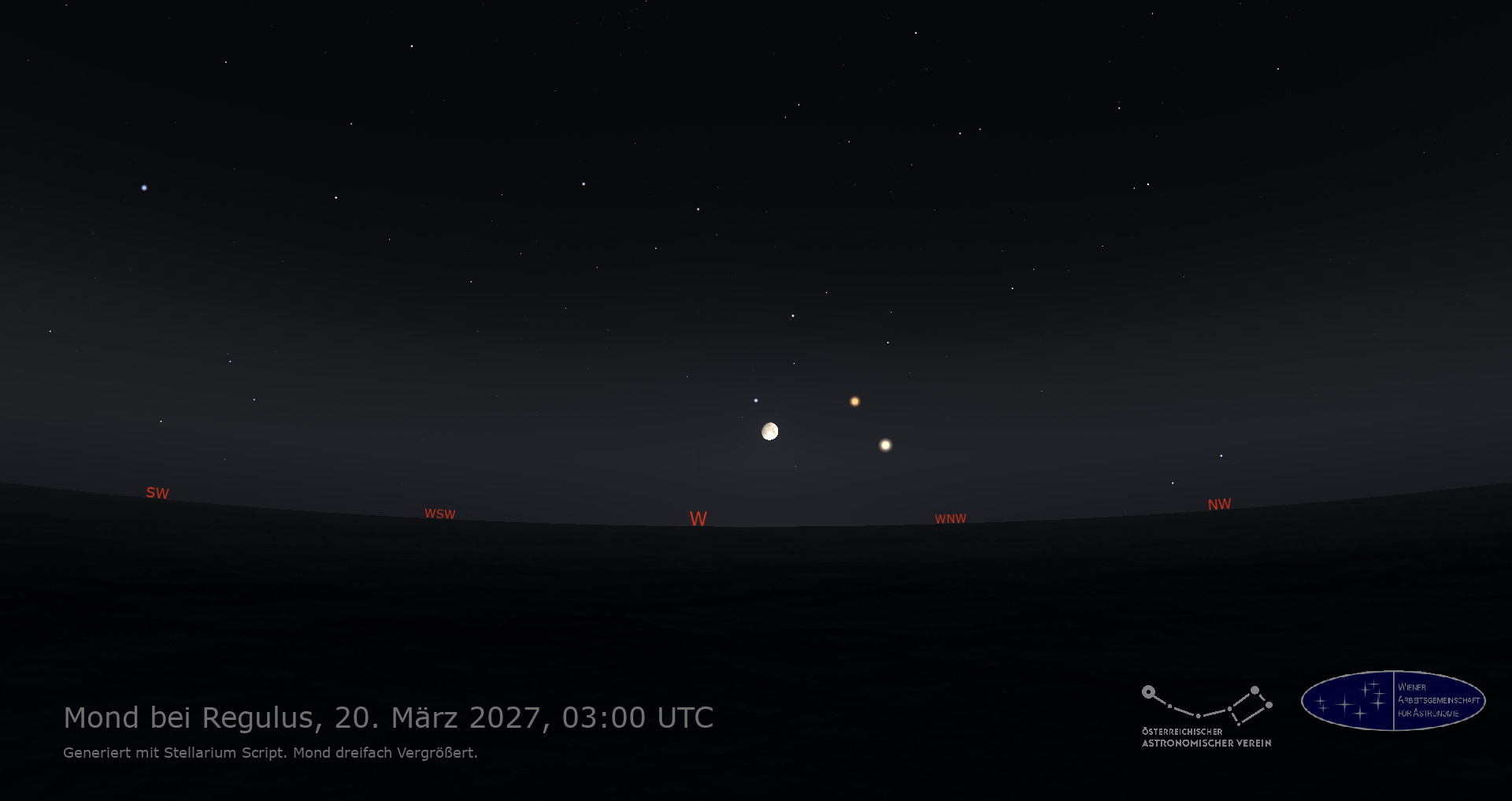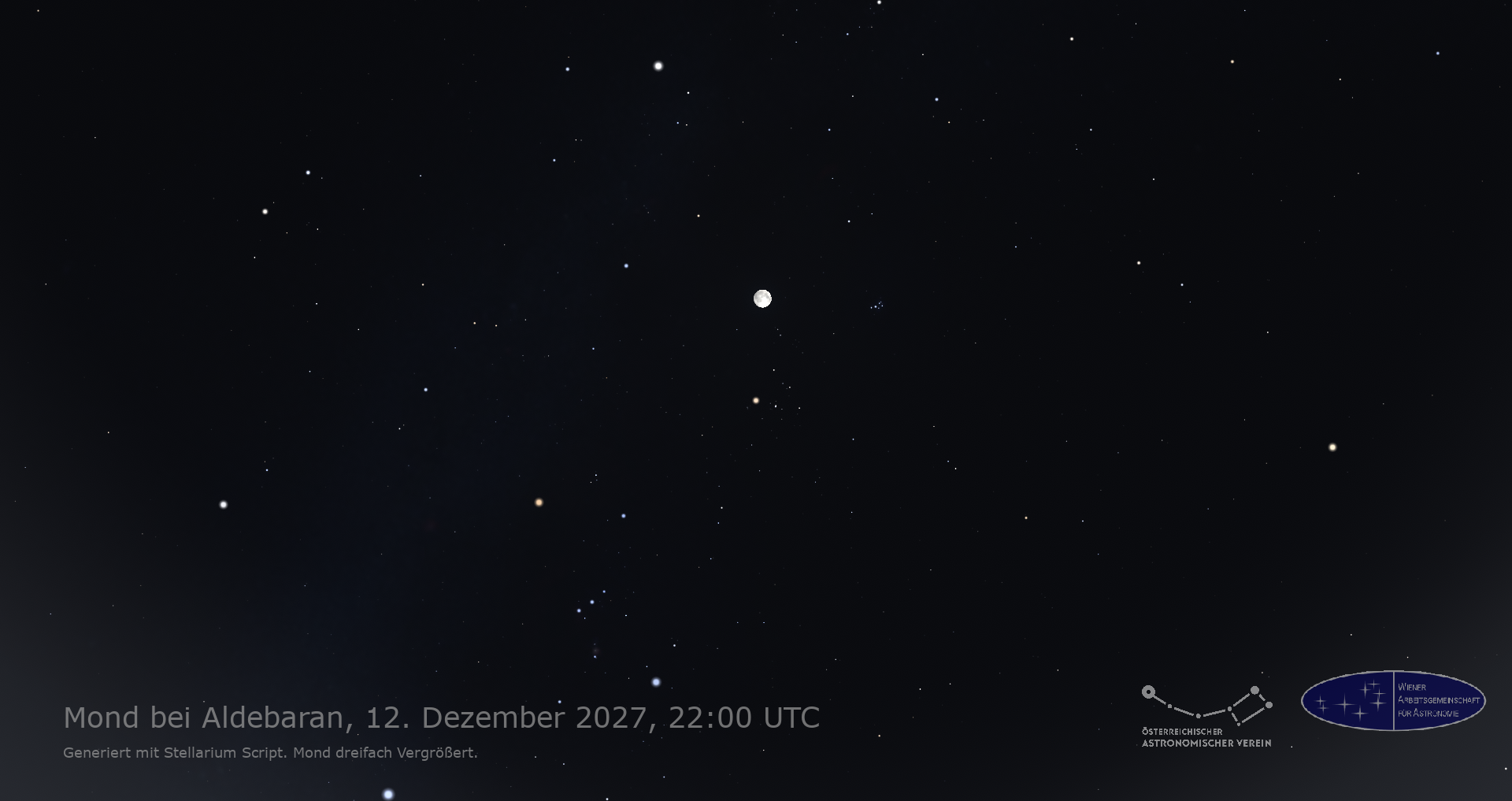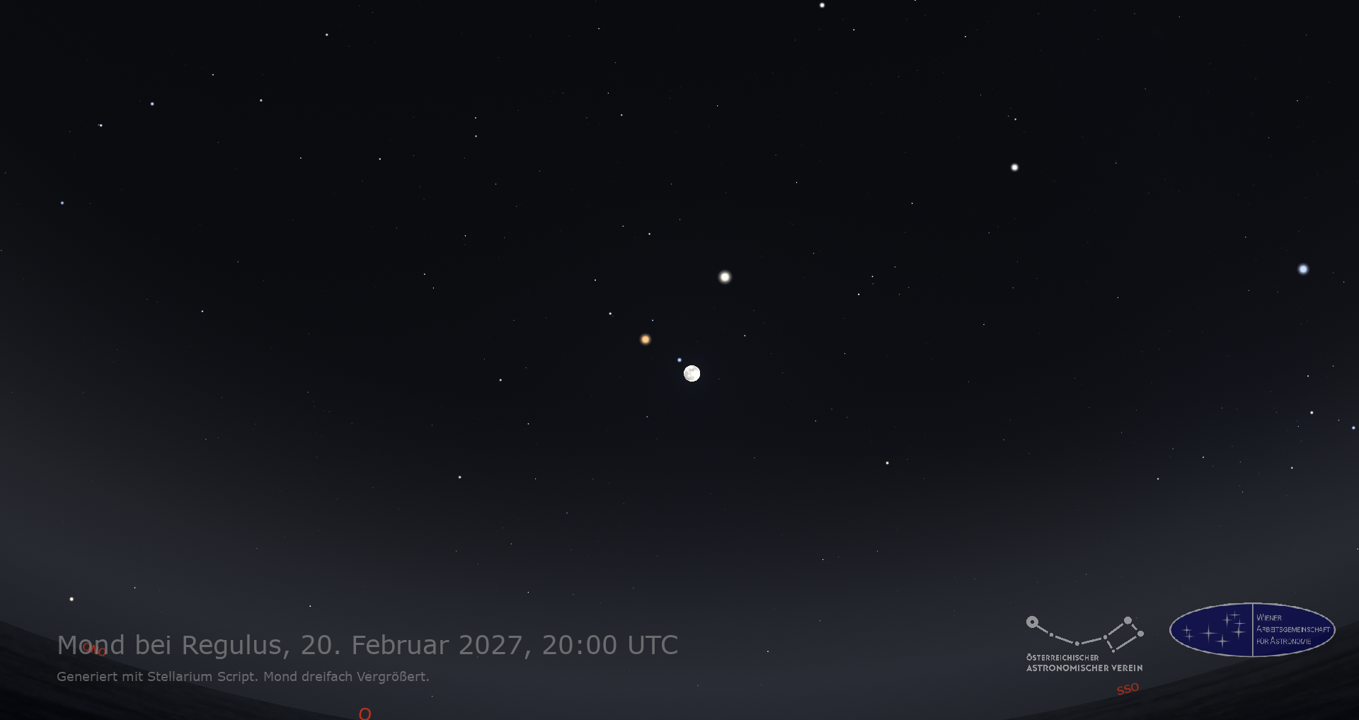 Ausgewählte Begegnungen des Mondes mit den hellen Sternen und Planeten im Jahr 2027.