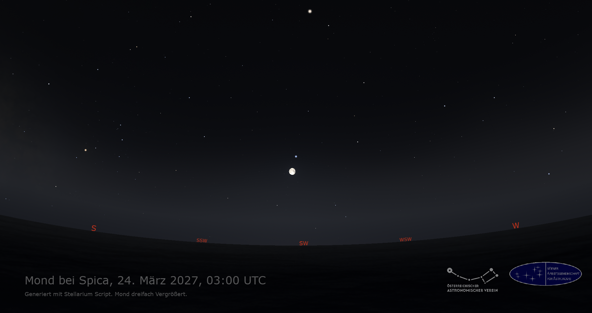Auf seinem Lauf über den Sternenhimmel, einmal in 27,3 Tagen, begegnet der Mond