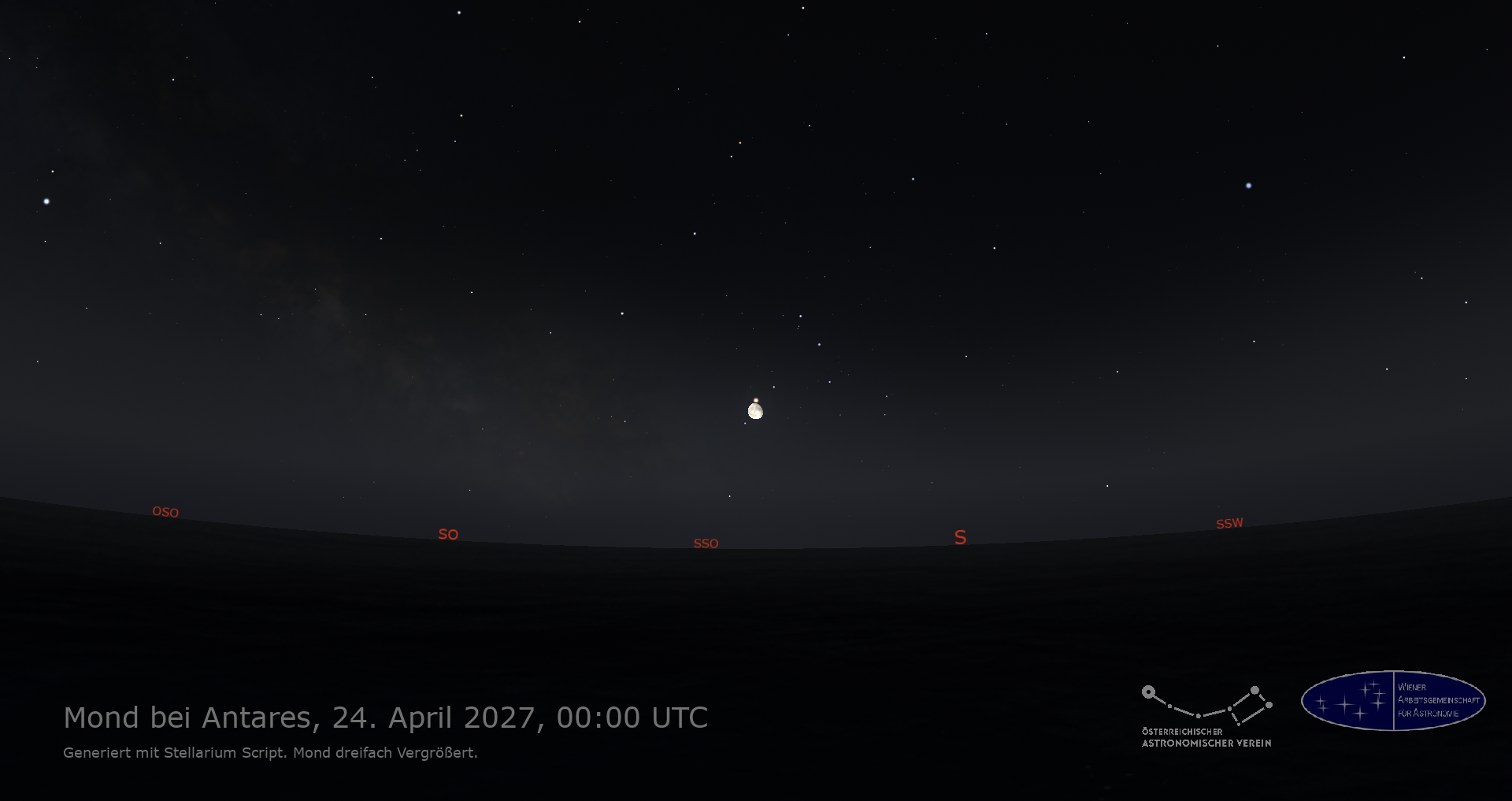 einigen wenigen helleren Sternen (Aldebaran, Regulus, Spica und Antares) sowie fallweise