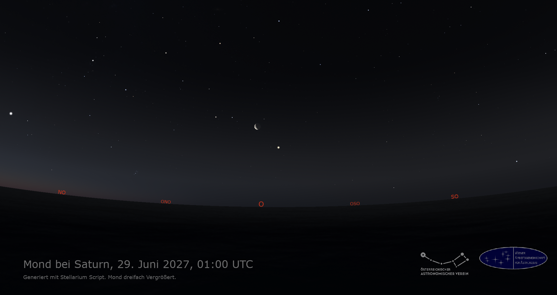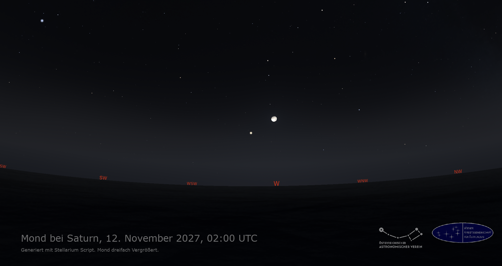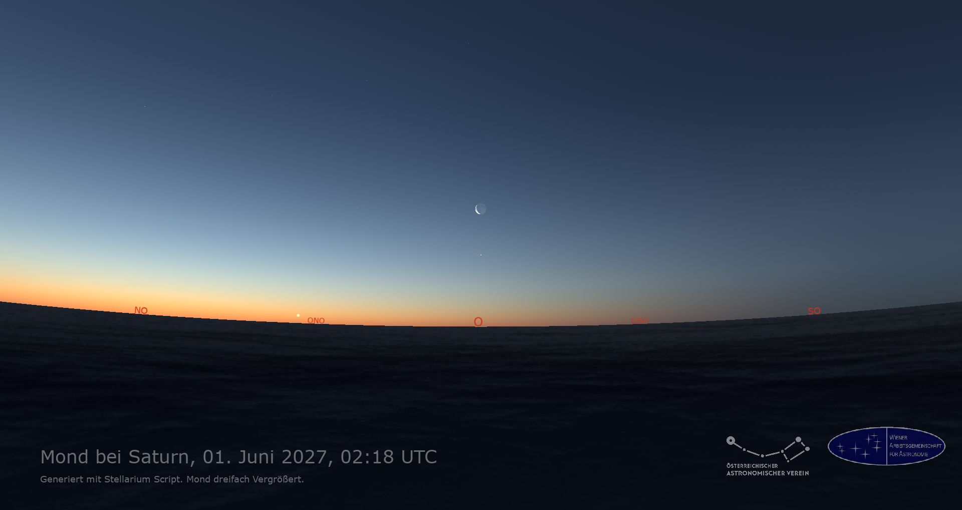 am Beginn seiner Sichtbarkeit noch sehr unauffällig, Saturn auffälliger und