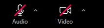 Danach sollten wir Sie im Meeting sehen und Sie uns und alle anderen Teilnehmerinnen und Teilnehmer. Am unteren Bildrand erscheint - wenn Sie mit Maus oder Finger darüberfahren - eine schwarze Leiste mit Funktionen. Links unten befinden sich Symbole für Mikrofon und Kamera. Mit diesen können Sie Ihr Mikrofon und Ihre Kamera ein- und ausschalten sowie über das kleine Pfeilsymbol ein anderes Gerät wählen. Wir bitten Sie, während eines Vortrags oder einer Präsentation Ihr Mikrofon abzuschalten.